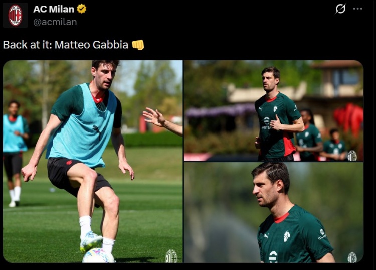 4月7日讯 米兰官方晒照,球队后卫加比亚回归合练加比亚自2月底米兰对阵帕尔马的比赛后便一直因伤缺阵。今天,他重返合练,正式步入复出的最后阶段。...